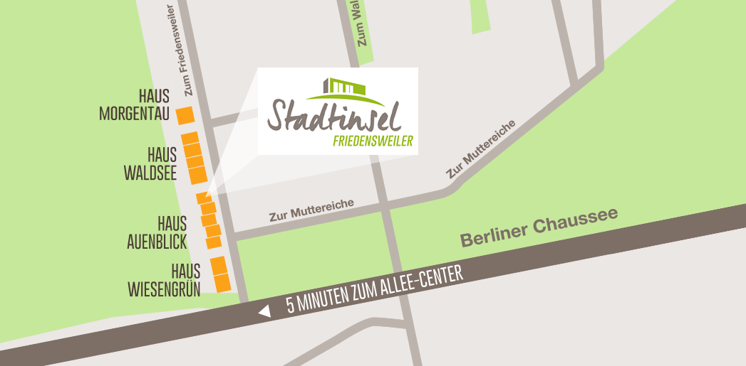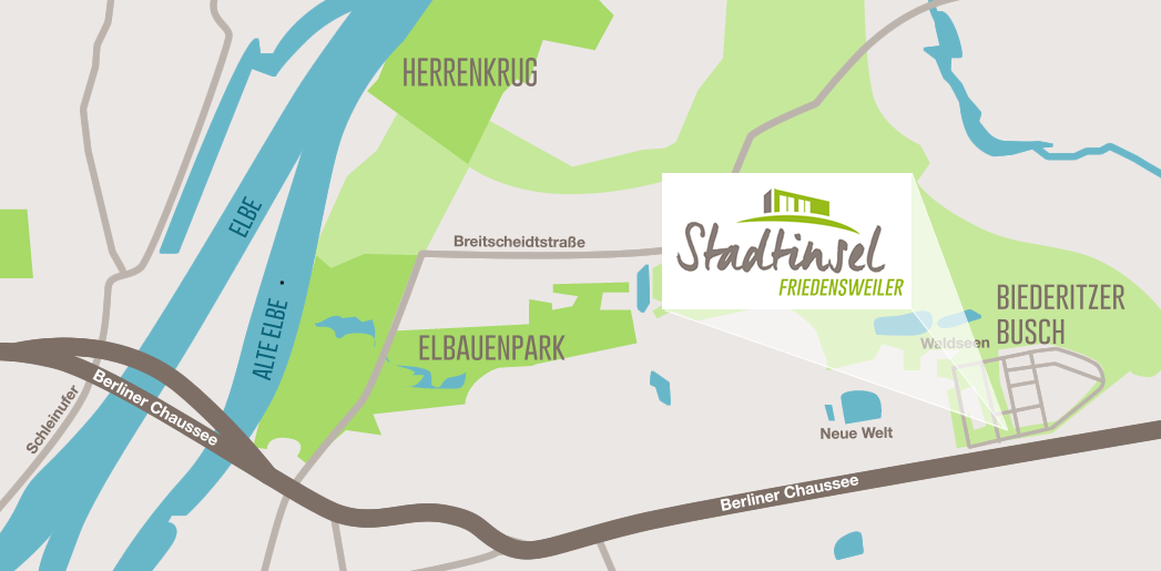 Eindrucksvoll grün! Östlich der Elbe, inmitten der Natur liegt die Stadtinsel Friedensweiler – eingebettet in eine idyllische Siedlung, umgeben vom ehemaligen BUGA-Gelände Elbauenpark, dem Auenwald Biederitzer Busch und kleinen Waldseen. Der Trubel der Stadt ist hier weit weg und doch zum Greifen nah. In wenigen Minuten per Bus oder Auto ist die City erreicht – den Dom, das Wahrzeichen der Stadt, dabei immer im Blick.